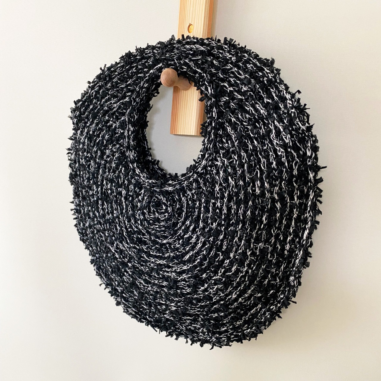 透け感のあるデザインで軽くてしっかり。持ち手の円部分は直径約10cmあり、腕を通して使うことができます。